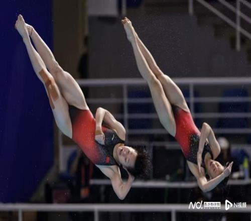 奥运冠军陈艺文和队友林珊每跳均列第一,三跳过后以总分225.63分排名第一,广东另一对组合梅颖芯/欧阳钰以总分203.40分排名第三,四川队的陈佳/杨睿琳以总分211.05分排名第二。