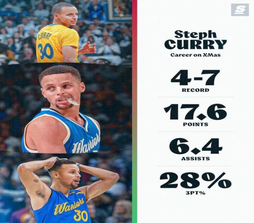库里自2009年进入NBA以来共参加了11场圣诞大战,共取得了4胜7负的战绩。库里场均能得到17.6分6.4助攻,其中他引以为傲的三分球命中率仅为28%,他的生涯三分命中率为42.3%。